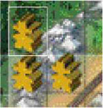 Gold mine: the player earns 1 gold tile for each of his farmers next to the building.