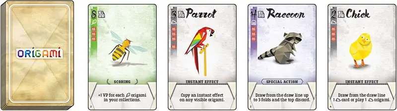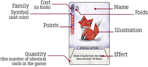 Note: Each Origami has an effect, described on the card. At first, it will seem like you have a lot to learn but don't be discouraged: the game will flow more smoothly the more you play!