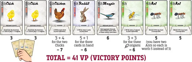 = 1 point) plus any points you earn from any Scoring effects on the Origami in your Collections (it does not matter if they have been covered by other Origami).