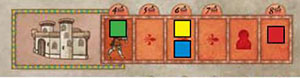 Take a Knight Tile from the game board and put it into your Followers Bag. Then advance one space on the Knights Track. The Knights Track indicates how many Followers you may draw from your bag and place on your Market in Phase 3.