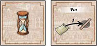 Hour Glass: The Start Player draws the topmost Hour Glass Tile from the stack and turns it face up. The Hour Glass Tiles determine the length of the game.
