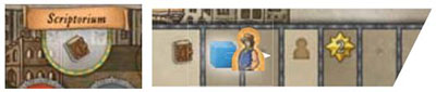 Take a Scholar Tilef rom the game board and put it into your Followers Bag. Then advance one space on the Scholars Track and receive the depicted number of Development Points. For each Development Point you receive during the game, advance your marker one space on the Development Track.