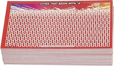 Outburst is a game of topics. Each card has a topic and 10 target answers. Each card is printed on both sides, but only one side is played at a time.