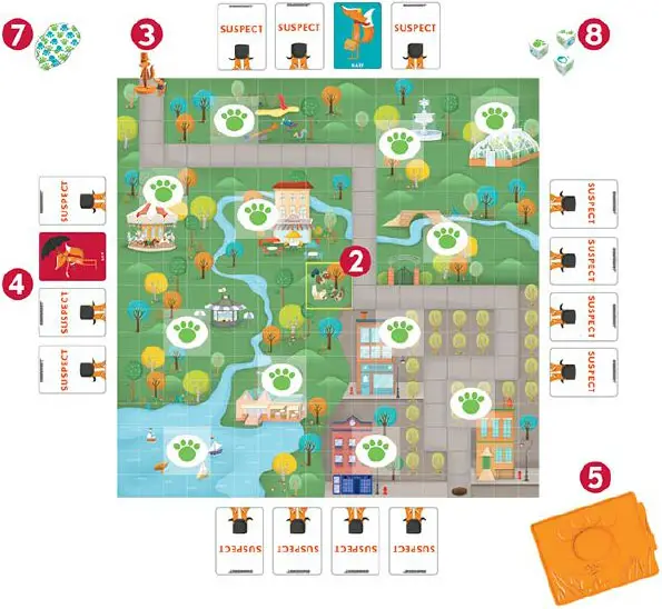 Work together as a team of detectives, gathering clues and eliminating possible suspects. Figure out who is the guilty fox before it escapes.