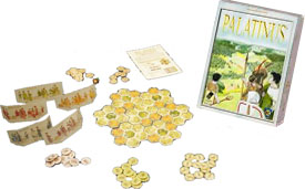The owner of the game chooses a starting player, or you can just choose at random. Shuffle the territory tiles face down. Put one of them face up in the center of the playing area, and place the "Palatinus" token (value: 6) on the hill space.