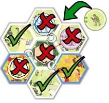 Important: The inhabitants bringing influence are only the ones surrounding the hill, but they consider all other adjoining inhabitants, even if they lie on a different hill tile.