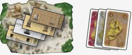 Shuffle the 5 game end tiles (riders) into the III stack of building tiles, returning it face down on the table. From the I stack, draw the top-most 5 tiles and place them face-up, 1 each on the quarries and the material supply.