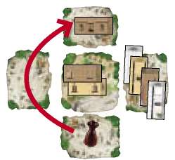 He always places the second tile face up on one of the quarries. How does he decide which quarry? Starting with the quarry with the master-builder (as zero) and counting in a clockwise direction to the other quarries, he places the tile on the quarry whose number matches the number of windows on the tile.