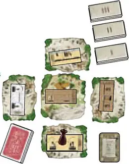 Place the value 3 certificate face up near the material supply and the quarries. Shuffle the 55 money cards and place them face down as a supply stack near the material supply and quarries.