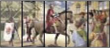 In the III stack of building tiles, the five game end tiles (riders) are shuffled in. (They signify the arrival of the Royal Ambassador who will judge the competition and choose a winner of the palace building).