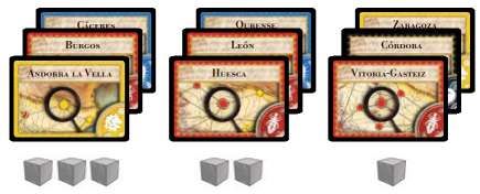 - Reveal 3 more cards: put 1 disease cube on each of these cities. (You will place a total of 18 disease cubes, each matching the color of the city).