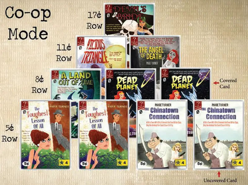 In this mode, the players work together to win. The goal is to buy all the Fame cards before any card gets five tokens on it. The Fame cards start in a pyramid pattern(see below).