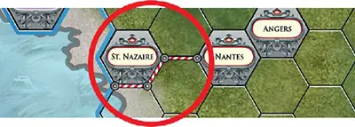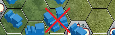 Hexes divided by a checkered line are not considered to be adjacent. No track may be built across such a line.