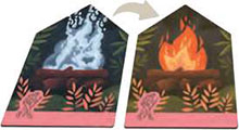 When a Hiker arrives here, the player immediately relights their Campfire if it is extinguished, and then chooses one of the available areas for their Hiker- placing it vertically in the farthest right available slot of that area: