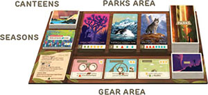 Shuffle all the Park cards face down to form the Parks deck. Deal three face up into the top slots of the board and place the deck onto the Parks deck area on the top right of the board.