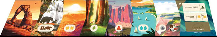 When a Hiker reaches the end of the Trail, they can spend tokens they have received to visit Parks and earn points. Your goal is to have the most points from your Parks, Photos, and Personal Bonus at the end of the Year.