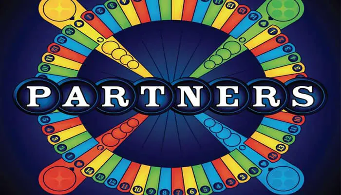 Place the board between the four players. Players sitting across from each other become "partners", e.g. yellow player pairs up with blue player and red player pairs up with green player.