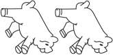 One pig lands jowl to the ground supported by an ear and a front trotter. (The other pig is a Sider!)