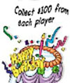 Example: You roll a 4. Since 4x100 is 400, you place $400 in the Jackpot. Take out a loan if you have to.