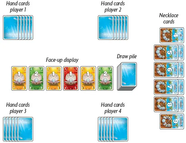 Put the remaining pearl cards as a face-down draw pile in the middle of the table.