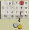 Each player selects a color, takes the two matching Colored Chits and places them beside his Mat. One Colored Chit is to mark each player's color. The other is used to show the player turn order.