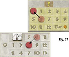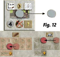 Each Building marked with a coin must also now be completed by pay- ing the necessary amount of resources (and recording it on his player Mat). (Fig- 12).