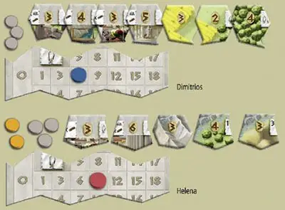 You can also play Peloponnes alone, in order to learn the flow of the game and optimize the different elements.