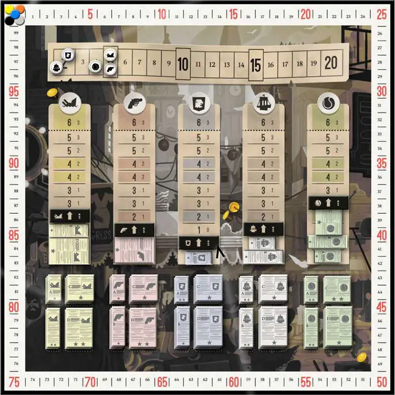 This variant is for 4-5 advanced players who have played Penny Press several times. The newsboy strike variant should not be used with 2-3 players.