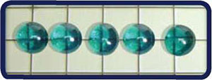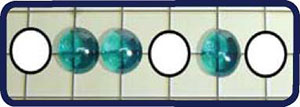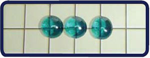 Therefore, if your opponent has an open three, as shown at left, one end of the three would be blocked immediately to prevent the formation of the deadly tessera.