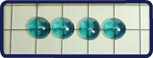 Playing Hint: If you obtain the advantage of having an unblocked four-in-a-row, called "tessera", you have practically won the game. Whichever end your opponent blocks you can play on the other end and achieve the winning five-in-a-row.