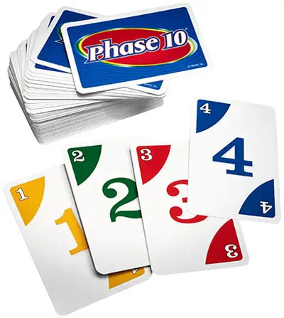 A Phase is a combination of cards. Phases are made of sets, runs, cards of all one color, or a combination of sets and runs. These are the ten Phases: