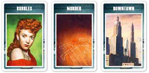 Example: Red thinks she has solved her case. She places a black token on the Bubbles, Downtown, and Murder tile. The player to her right reveals that she is correct.