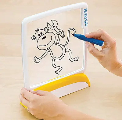 The Picturist uses the marker to sketch the clue on the plastic window just as they would if they were using a pencil and paper.