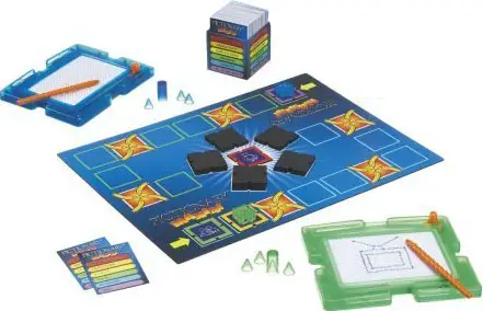 Each team picks a color: blue or green. Distribute one Playing Piece, one Turn Token, three Challenge Chips and one Drawing Tablet, of the same color, to each team.
