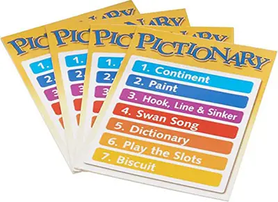 Pictionary Showdown is a game where you get teammates to guess a clue not by using words, but by drawing on it out on a pad of paper!