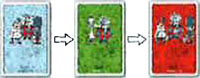 Mix together the red and green cards from both games and shuffle one red pile and one green pile. Put them face down on the table.