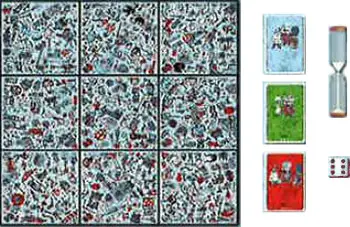Find objects on the tiles to win cards. Win the most cards or be the first to collect six cards to win the game