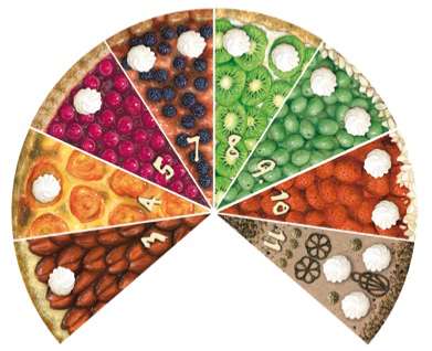 Each variety awards a different amount of points. One can immediately eat slices to guarantee a number of points, or collect them in the hope of scoring bonus points for having the most of that variety at the end of the game.