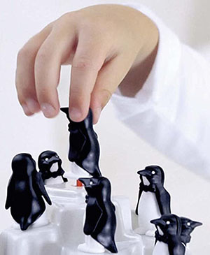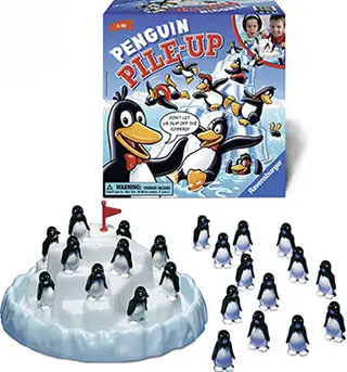 Steady hands and careful planning are needed to balance all your penguins on the slippery iceberg. If you succeed before the other players, you win the game! But if the penguins fall, you must start all over again.