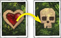 If the Treasure is not accessible (wrong time of day, or trapped), DO NOT tap the card. If you do anyway, the card stays in the middle and you lose 1 Life Point (turn one of your Life Point cards from the Heart side to the Skull side).