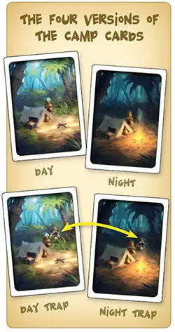 Camp cards represent other players' Treasure stashes. If a Camp card is accessible, you can steal other players' Treasure cards.