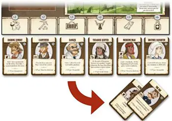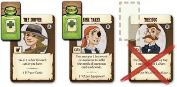Take the townsfolk card from the slot matching the die face on your die. Townsfolk do not take up space in your wagons.