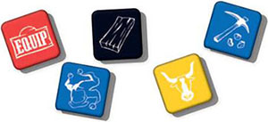 Equipment must be stored in a space on one of your wagons. Each Equipment tile offers a bonus, often related to choosing specific dice.