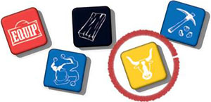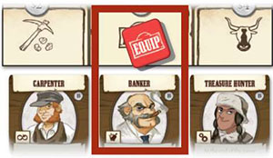 Equip: Take any 1 of the available equipment tiles and place it on a space in one of your wagons.