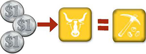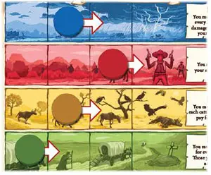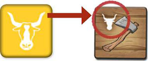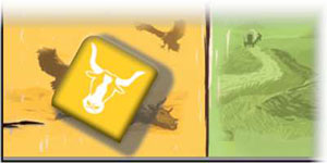 Cattle: Take 1 cattle from the stock and add it to your herd, next to your wagons.