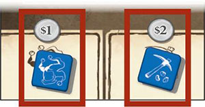 Mine: Draw 1 gold token from the gold bag and place it face down on a space in one of your wagons. You may look at the token at any time.