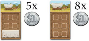 During your turn, you may spend $5 to get a small wagon, or $8 to get a large wagon. You may buy as many wagons as you can afford.