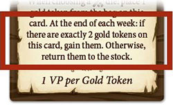 Gain 1 VP per nugget displayed on your gold tokens (each token has 1, 2, or 3 nuggets).