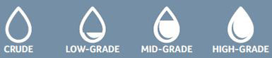In Pipeline, there are 3 types of oil represented by their 3 distinct colors: Teal, Orange, and Silver. Each type of oil has 1 of 4 grades: Crude, Low-Grade, Mid-Grade, and High-Grade.