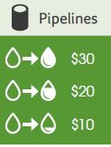 Pipelines: Players earn money for each of the Pipelines in their network, even multiples of the same color. The amount earned is determined by which grade of oil the Pipeline can refine a barrel of Crude to in a single run. Pipelines that are not long enough to refine Crude oil to at least Low-Grade earn the player $0.